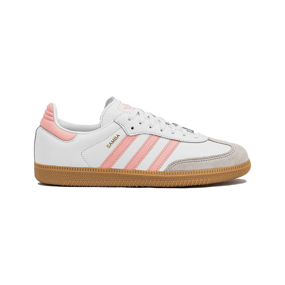 Adidas Samba OG White Coral Pink GS adalah perpaduan desain klasik dengan sentuhan modern yang segar.