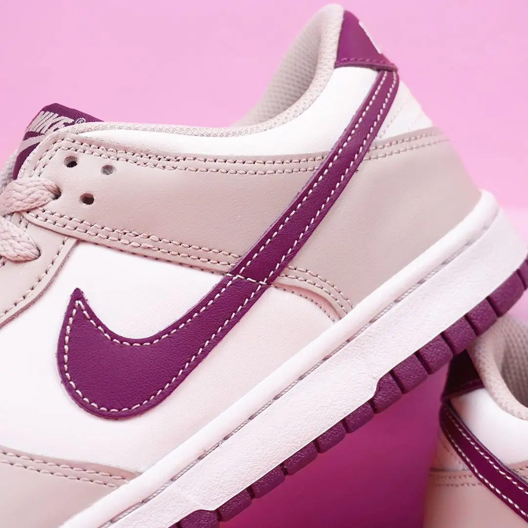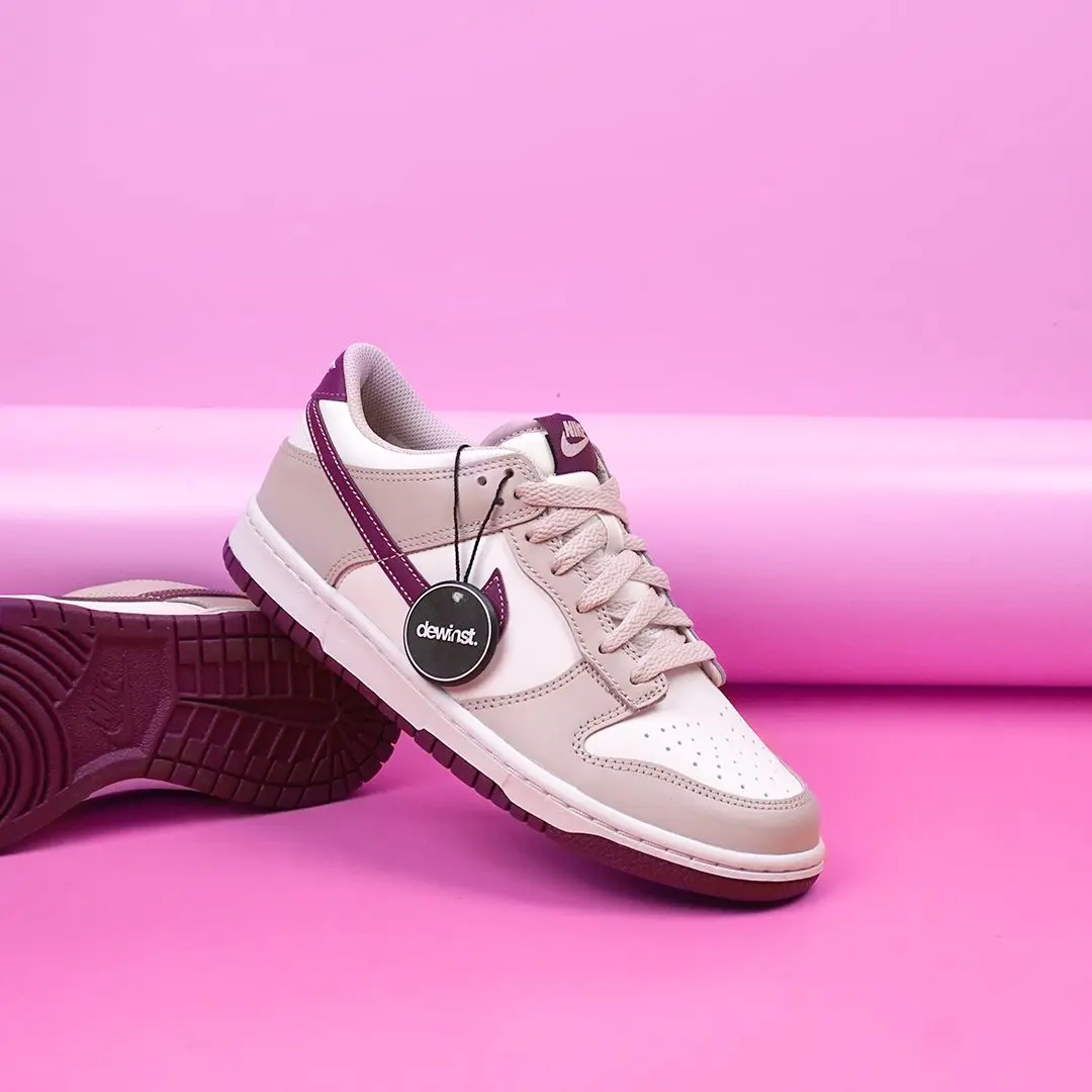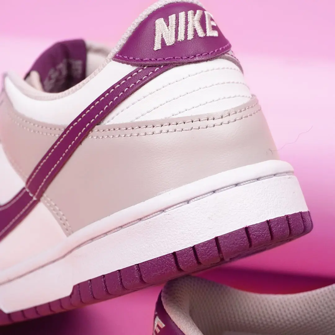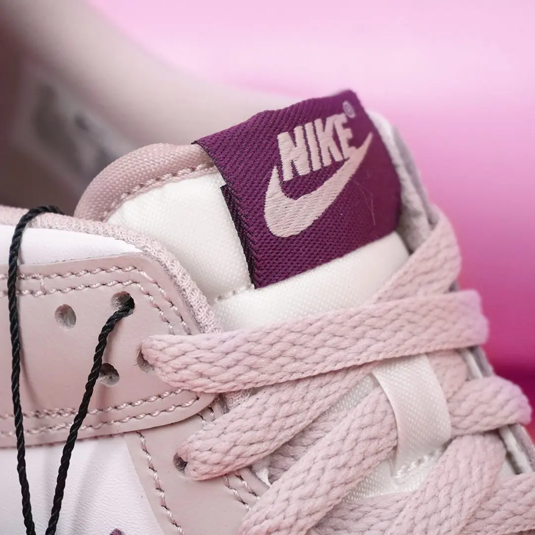 Kulit ungu lembut menghiasi lapisan sepatu, berpadu dengan dasar putih bersih. Swoosh lateral memiliki warna yang lebih gelap yang dihiasi dengan jahitan berwarna terbalik yang berfungsi untuk menonjolkan konstruksi sepatu. Beralih ke sisi tengah, Swoosh kembali ke warna ungu lembut agar senada dengan lapisan, dihiasi dengan jahitan gelap untuk melengkapi tema pada sepatu ini.