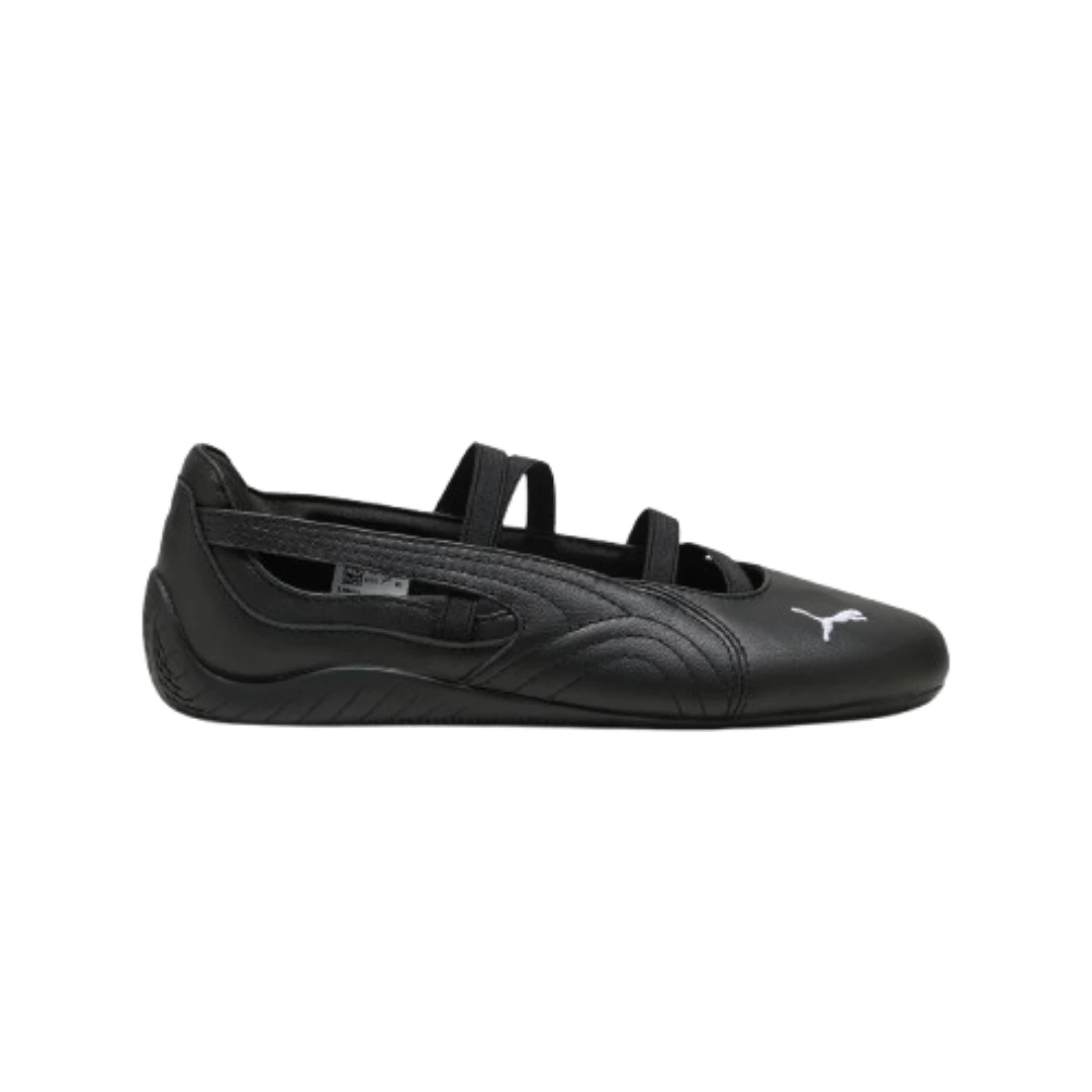 Puma Speedcat Ballet Suede “Black” Women’s adalah interpretasi segar dari siluet legendaris Speedcat, menggabungkan DNA motorsport klasik dengan kelembutan ballet flat. Upper suede hitam elegan dipadu dengan formstrip putih berdetail lembut, sementara empat pita elastis menyilang di bagian atas menciptakan tampilan slip‑on khas ballet sekaligus memberikan fitting yang nyaman dan pas di kaki. Embroidered PUMA Cat logo di toe dan heel tab menambah sentuhan heritage, dan insole Ortholite® memastikan bantalan lembut serta sirkulasi udara optimal. Dengan outsole karet yang tipis dan pola tread ala ban mobil balap, sepatu ini ringan dan low‑profile, cocok untuk gaya kasual yang chic dan berpadu mudah dengan berbagai outfit sehari-hari.
